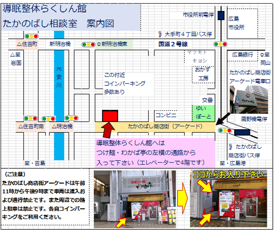 ・横川駅からは第7系統(広島港・広電本社前ゆき)で鷹野橋で下車(所要約30分)して徒歩3分